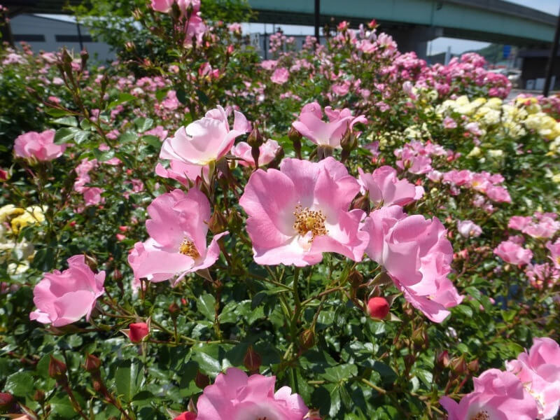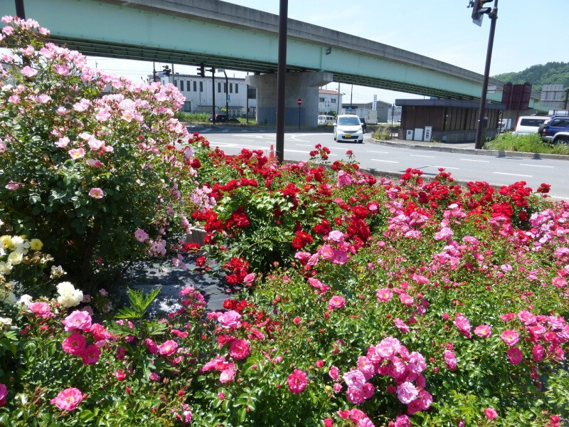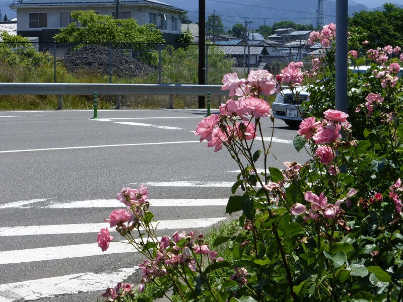 公園まで行かなくても、道路わきにバラが植えてあるところが多々あります。