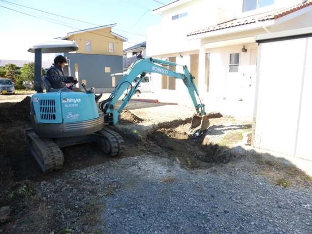 外構工事は、まずは地面をならすところから始まります。