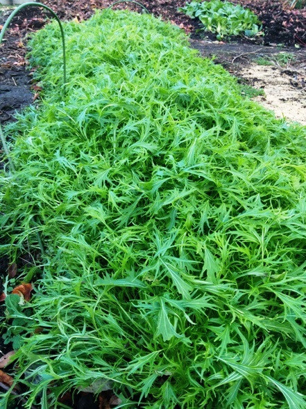 ミズナって、冷蔵庫に入れておくとすぐ萎れてしまいますが、使うときに使う分だけ収穫すれば、いつでもシャキシャキおいしく食べられますね。