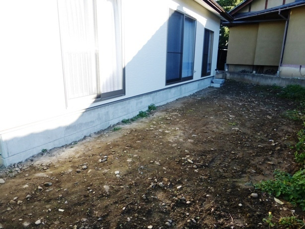 デッキの前には、春になったら芝を植える予定なので、土も入れ替えてあります。