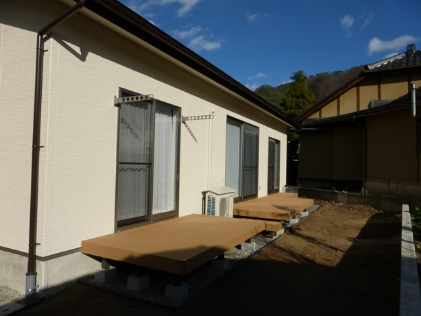 「足元を気にせず洗濯物を干したい!」というN様のご要望にお答えして、手前にもう1つウッドデッキを追加しました。