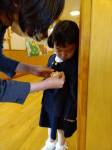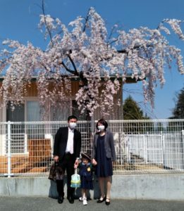 今年は桜が見ごろの時期に入園式となり、桜をバックに