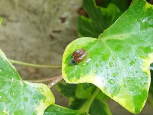 ちーーーさなカタツムリを、中庭で見つけました♬