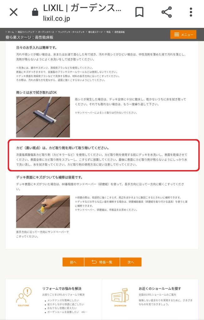 この画像のように、樹脂デッキが黒ずんでいるような気がする・・・
