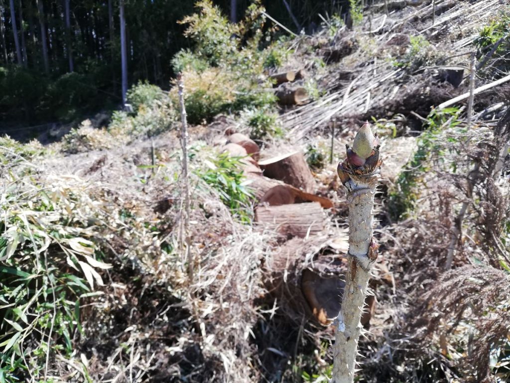切っていると、近くにタラの芽が!