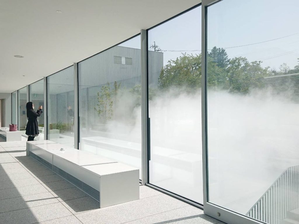 中庭に水が流れていて、滝のようになっている所に噴出孔があり、時間になると、、、