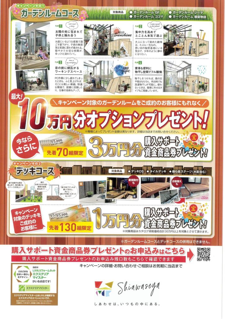 Shiawaseya-デッキやガーデンルームのある暮らしのキャンペーン♪
