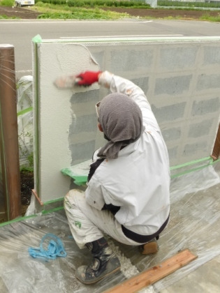 前回、寂しい感じだった門袖を塗りますと・・・