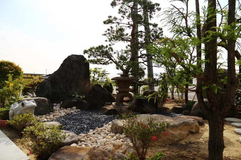 和室から見える風景は、化粧砂利や灯篭で、和風庭園が広がります。