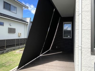 そんな暑い夏もお庭時間を楽しめるようにと、しあわせやオーナーのSさまのお宅でシェードを取り付けさせていただきました♬