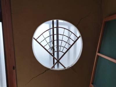 傾いたせいで、いたるところに大きなヒビが・・・