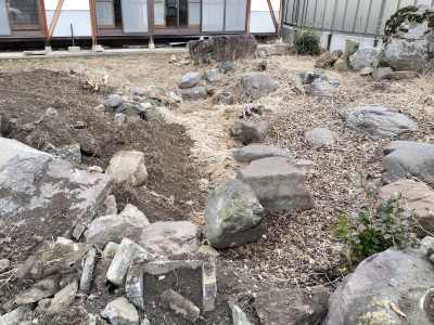 (昔の家なので庭石が大量💦)