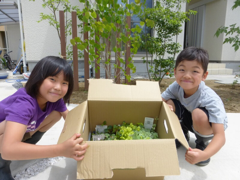 今日の午前中、オーナーズガーデン見学会にご協力いただけるO様邸にお邪魔していたとき、ちょうど植物(グランドカバー)が届きました!