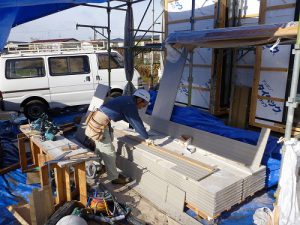 今週は天気も良くないので、ブルーシートの屋根を作り、作業が進んでいます。