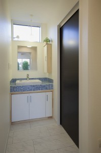 モザイクタイルがかわいい洗面台。