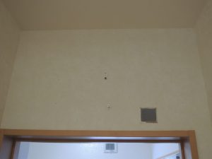 電気配線をするために天井に点検口を取り付けています。