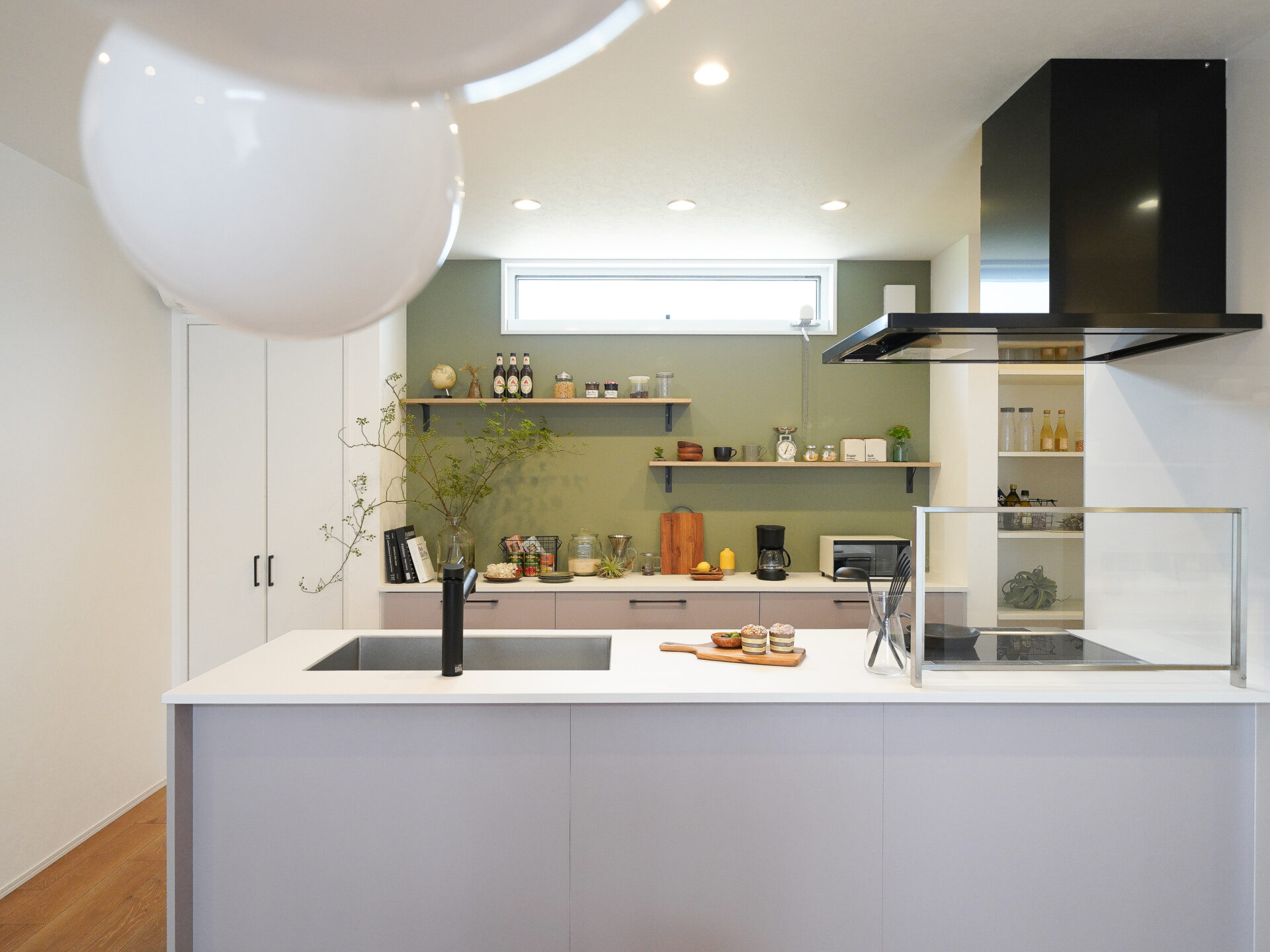 内装はすっきりとした印象に、やわらかなグリーンのアクセントクロスをプラス。