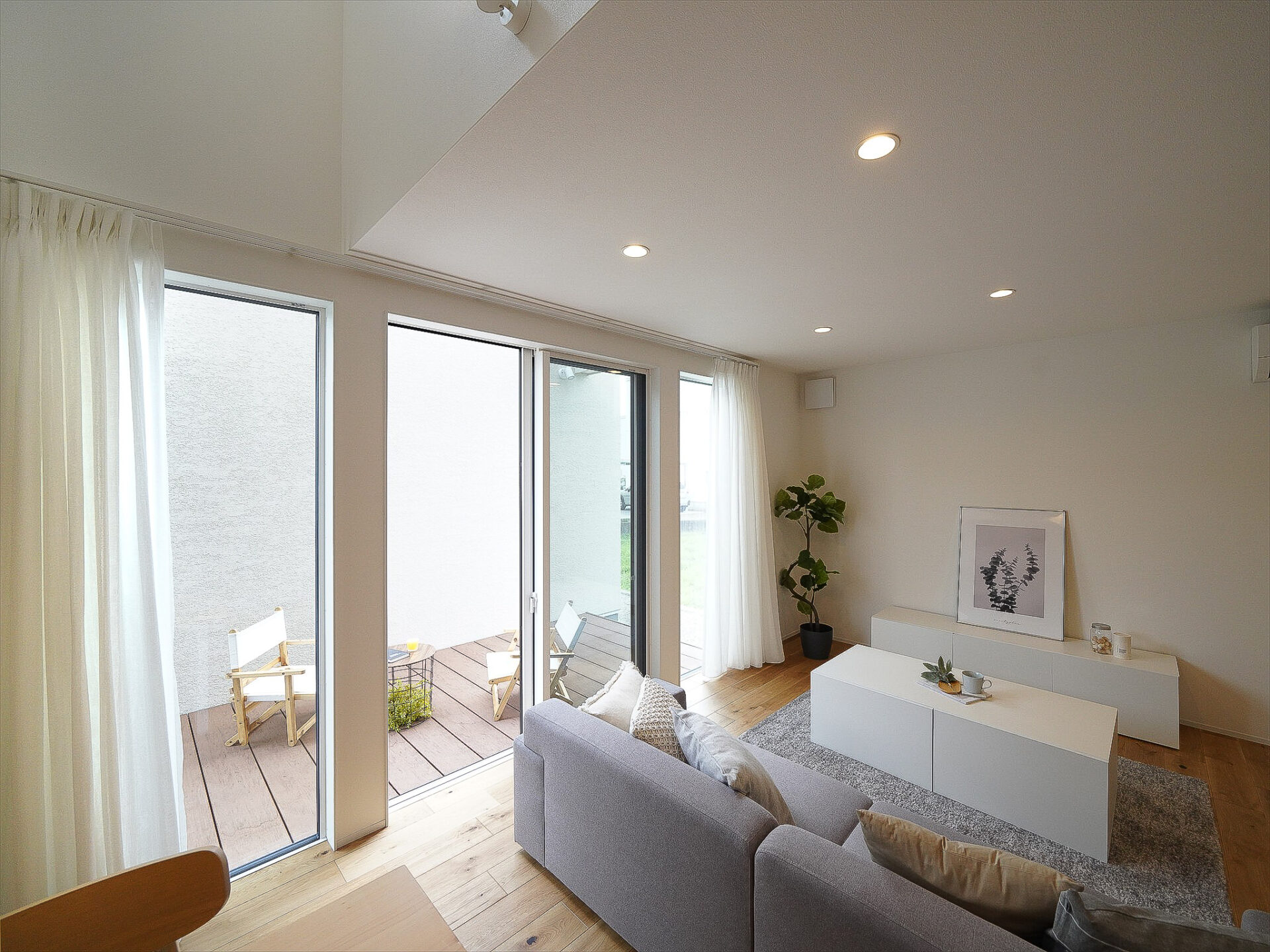 リビングの窓を開ければ、そこは家族だけのプライベートテラス。