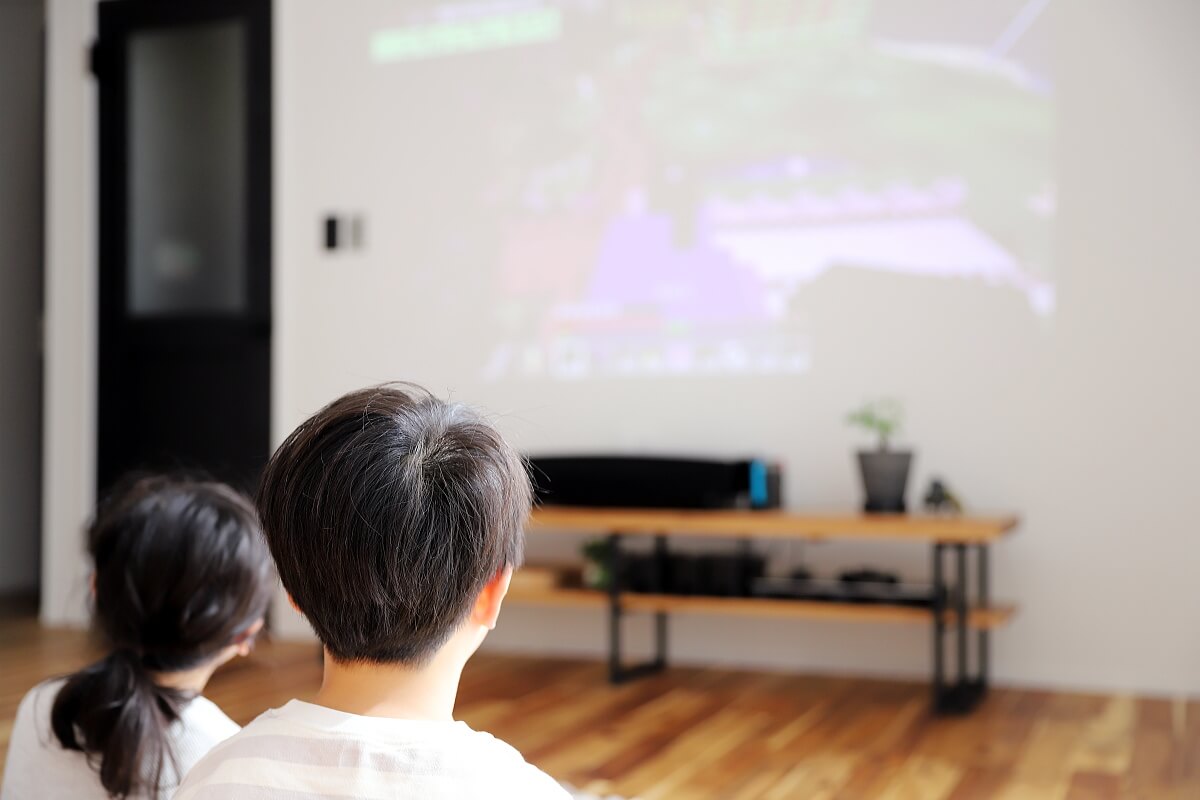 リビングのプロジェクターは主人の唯一のこだわりですね(笑)折り畳みテーブルを出して、お酒を呑みながらYouTubeやホラーを観るのが楽しみで(笑)