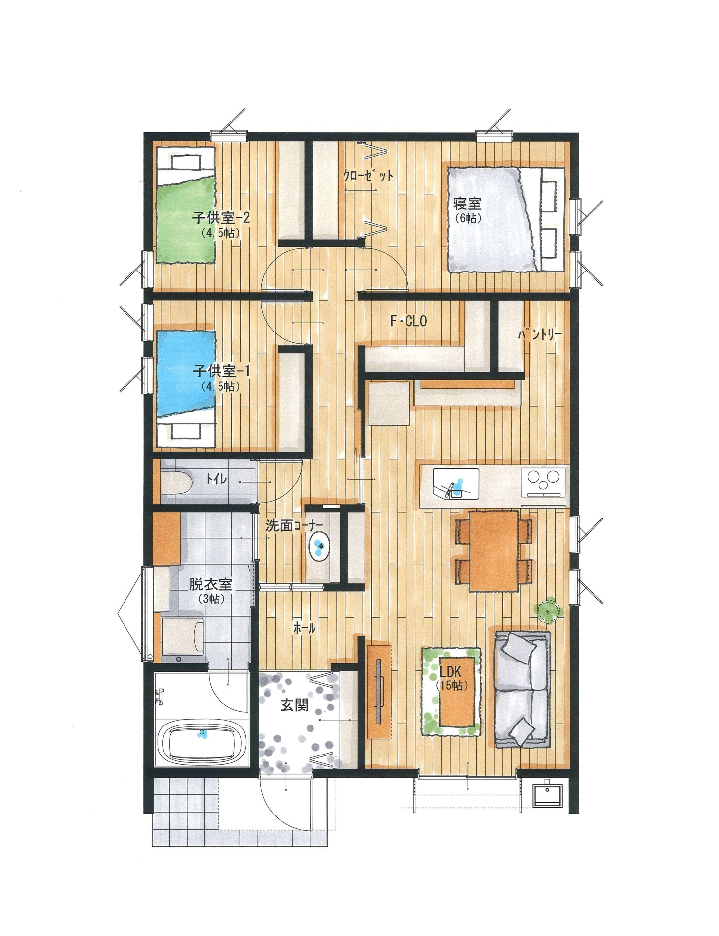 3LDK+ファミリークローゼットで、家族の暮らしにちょうどいい間取り。