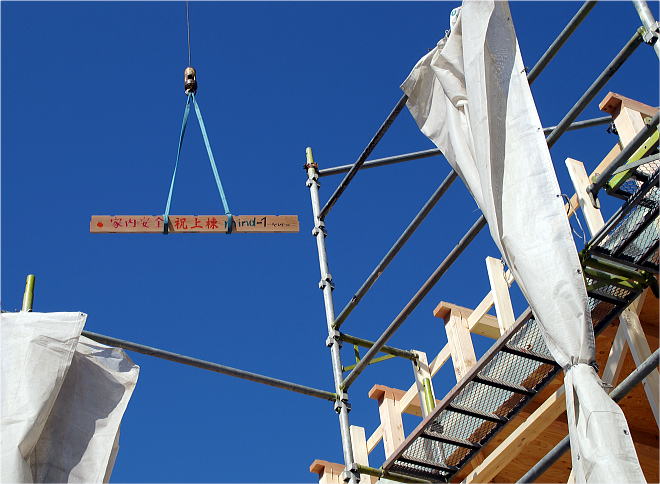 A様の見守る中、順調に上棟作業が進みましたよ!!