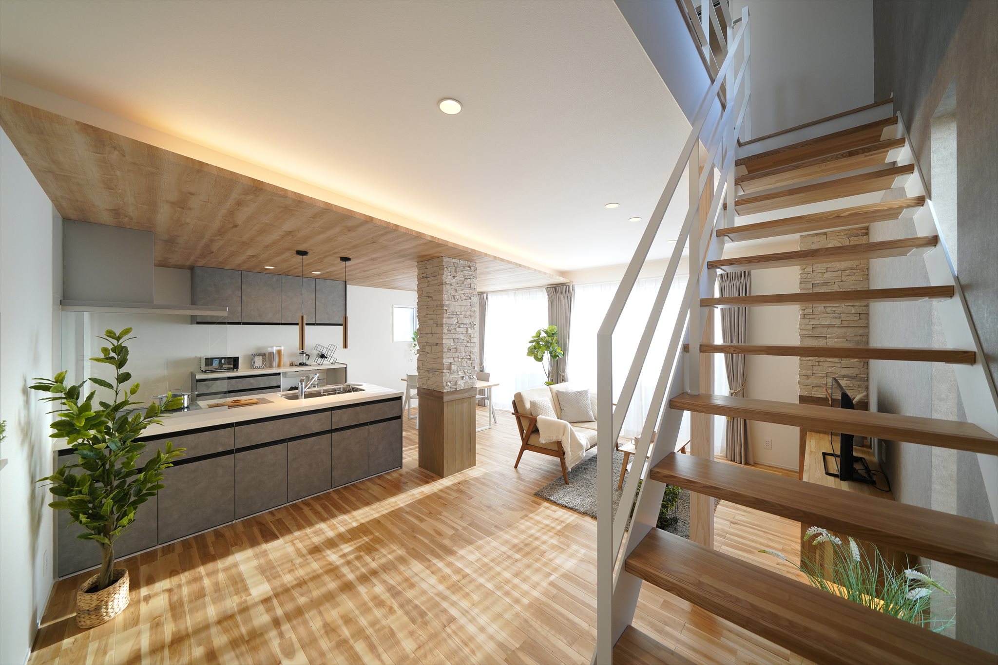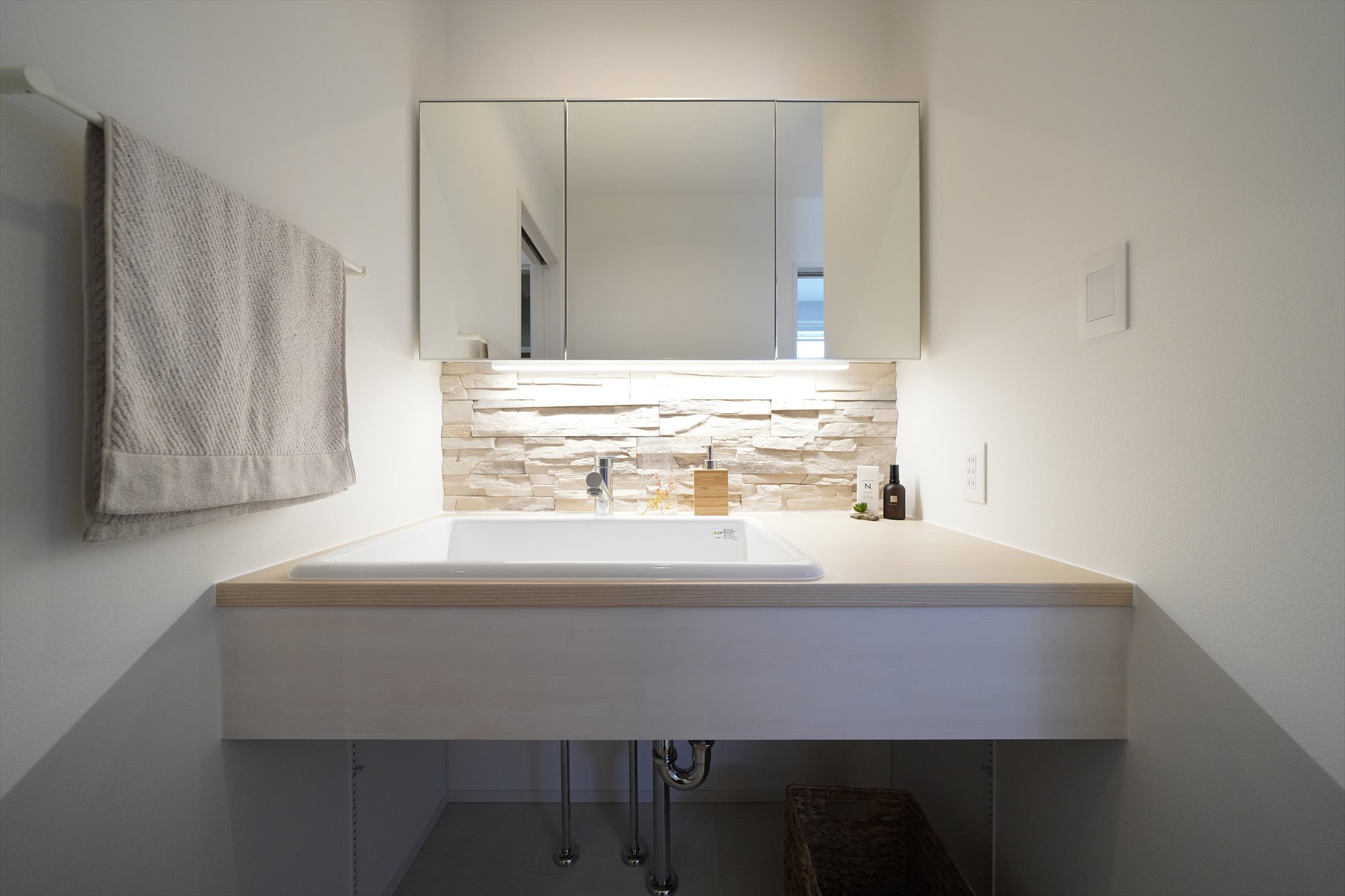 元野球選手のご主人と年下の奥様。お会いした時はまだご婚約中で、土地探しからお手伝いさせていただきました。 お家が完成するまでに、ご結婚、ご出産と人生の大切な節目を迎えられました。 奥様とは年齢が近かったので、いつも楽しくお打ち合わせをさせていただきました。 「石の教会」で結婚式を挙げられたとのことでしたので、お家の中にも石を使ったアクセントをご提案させていただきました。 素敵な空間でご家族の時間を過ごしていただけたらと思いま