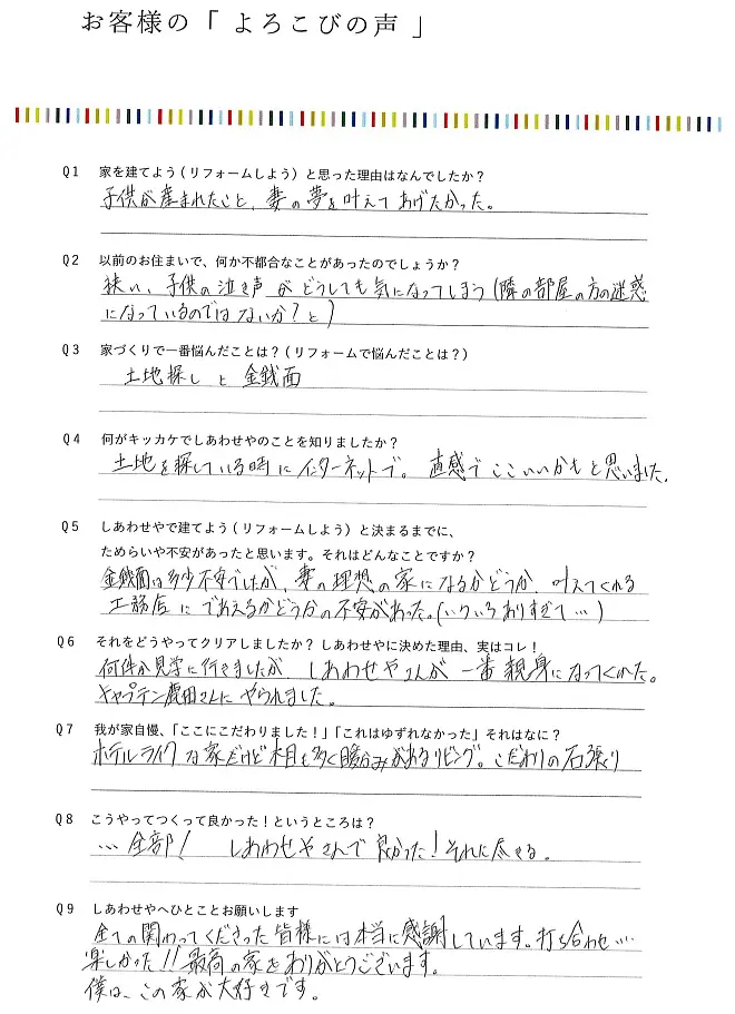 しあわせやで建てようと決めるまでにためらいや不安があったと思います。それはどんなことですか?