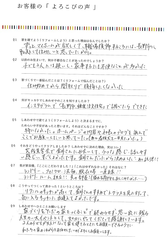 しあわせやで建てよう(リフォームしょう)と決まるまでに、ためらいや不安があったと思います。それはどんなことですか?