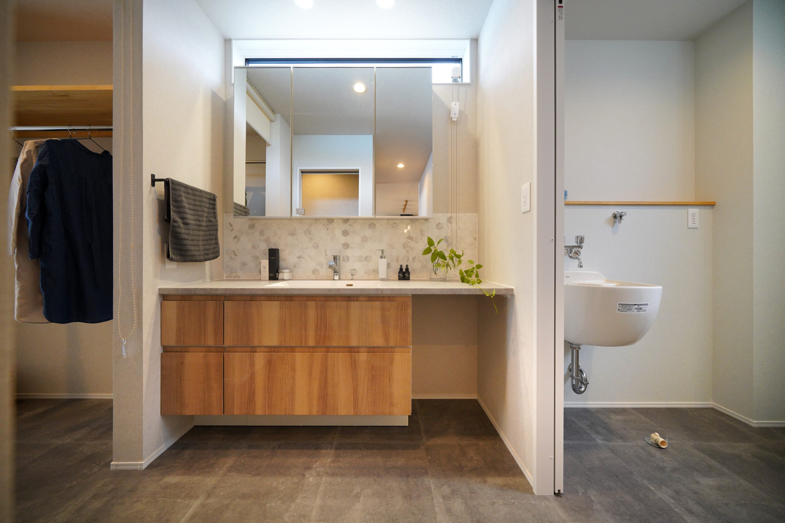 ご夫婦とお子様たち、ワンちゃんのお住まいです。奥様の職場復帰にあたり、家事ラクが叶う家を考えました。 LDKはお掃除ロボットがスイスイ動けるように仕切りを作らず広々と。水廻りも一直線に配置し、クローゼットをつなげることでお洋服の管理もしやすく。 ご主人のためのお部屋もあり、ご家族みんなが暮らしやすいお家になったと思います。